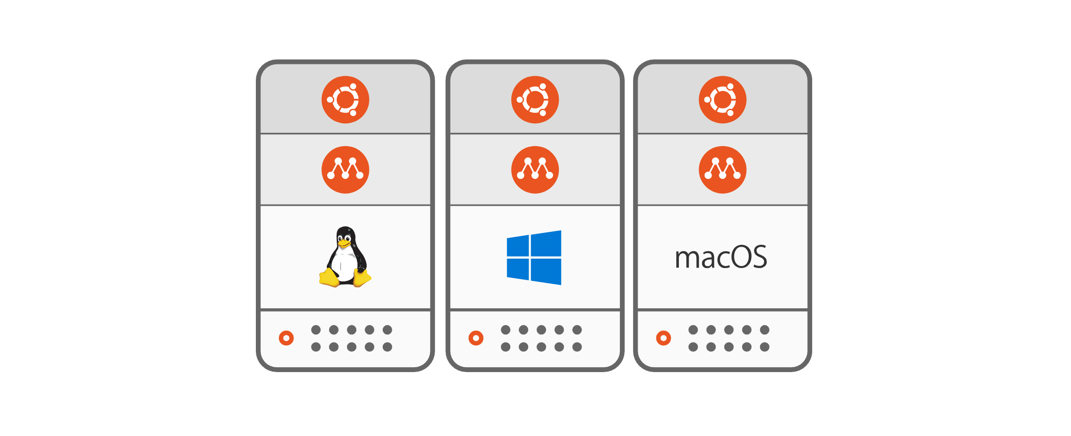 Multipass可以在Windows、MacOS、Linux等多平台创建轻量级Ubuntu虚拟机,它在各个操作系统平台中基于下面虚拟机平台创建: